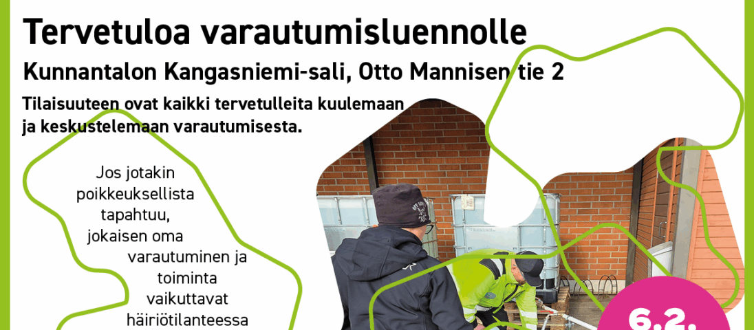 Tilaisuuteen ovat kaikki tervetulleita kuulemaan ja keskustelemaan varautumisesta.