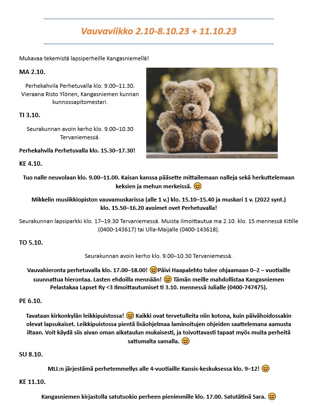 Vauvaviikko 2. – 8.10.2023 + 11.10.2023