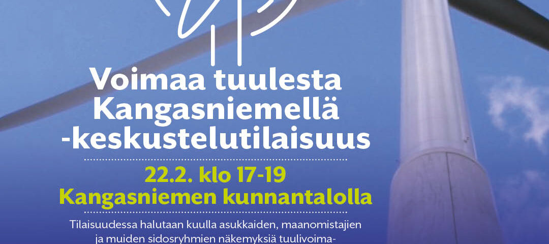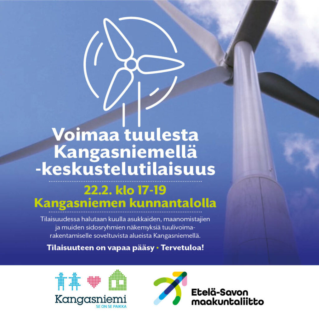 Tilaisuudessa halutaan kuulla asukkaiden, maanomistajien ja muiden sidosryhmien näkemyksiä tuulivoimarakentamiselle soveltuvista alueista Kangasniemellä.