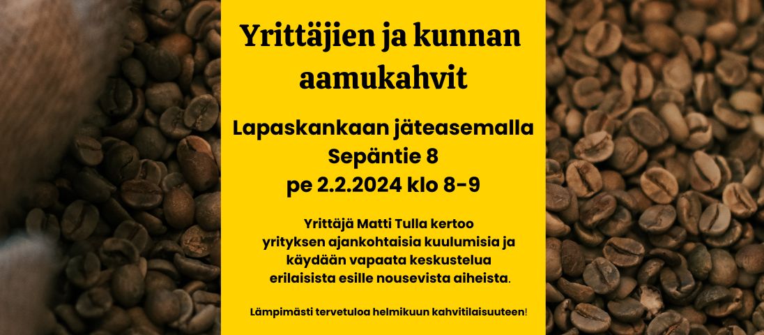 Yrittäjä Matti Tulla kertoo yrityksen ajankohtaisia kuulumisia ja käydään vapaata keskustelua erilaisista esille nousevista aiheista.