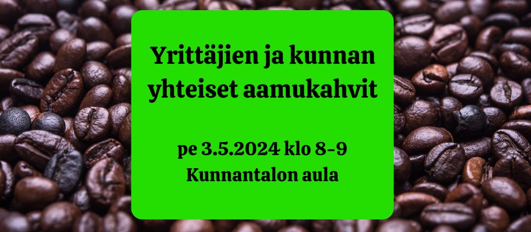 Lämpimästi tervetuloa yrittäjät, yrittäjien edustajat sekä kunnan luottamushenkilöt toukokuun vapaamuotoiseen kahvitilaisuuteen Kunnantalolle.