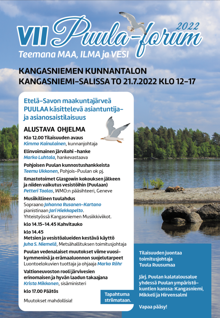 Torstaina 21.7.2022 kokoontuu Kangasniemellä suuri joukko Puulan ystäviä, jotka ovat aidosti kiinnostuneita yhteisen maakuntajärvemme nykytilasta ja erityisesti sen tulevaisuudesta.