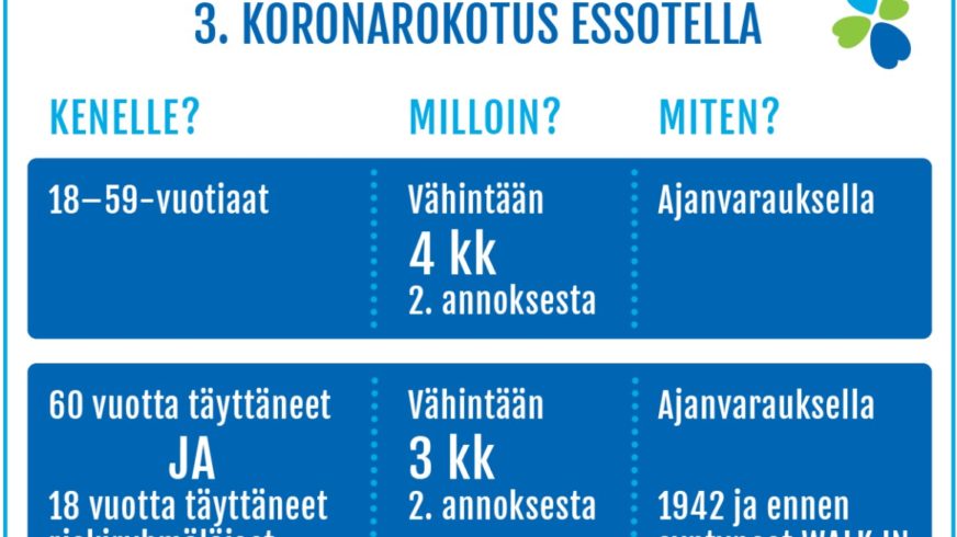 – kaikille 18–59-vuotiaille väh. 4 kk 2. annoksen saamisesta (Ajanvaraus)