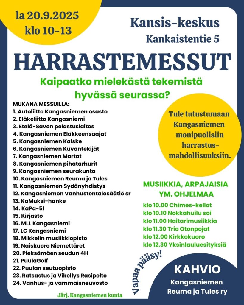 Tervetuloa Kangasniemen Harrastemessuille lauantaina 20.9.2025 klo 10-13 Kansis-keskukseen.