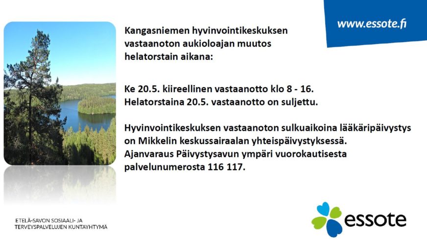 Helatorstain aukiolot hyvinvointikeskuksessa