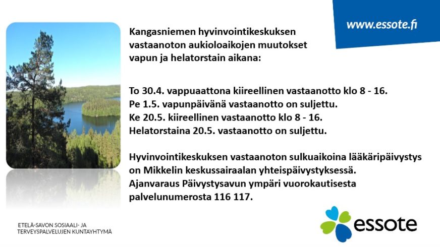 Vapun ja helatorstain aukiolot.