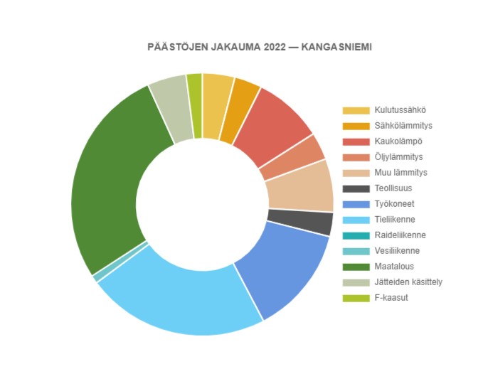 Kuva 1. Päästöjen jakautuminen sektoreittain Kangasniemellä vuonna 2022 (Suomen ympäristökeskus 2024).