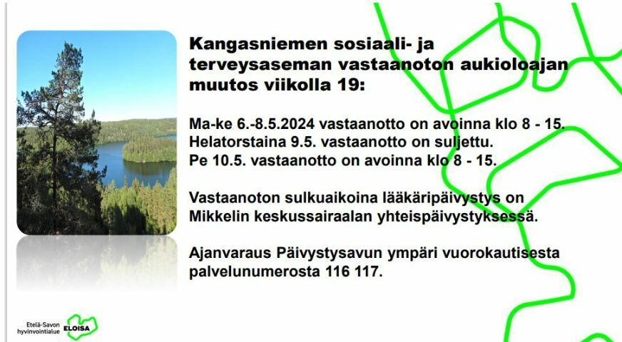 Ma-ke 6.-8.5.2024 vastaanotto on avoinna klo 8 – 15.