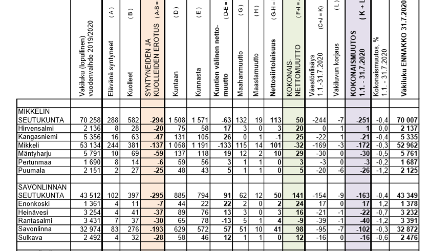 Mikkelin seudun kunnissa on käännytty muuttovoiton puolelle heinäkuun lopun väestönmuutostilastoissa. Vain Mikkelin kaupunki on miinusmerkkinen.