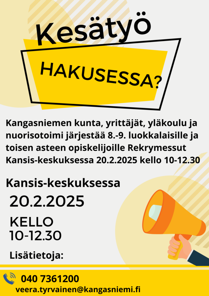 Kesätyörekrymessut 8.-9. luokkalaisille sekä toisen asteen opiskelijoille