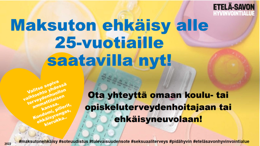 Maksuton ehkäisy on osa hallitusohjelmaa, ja sen tavoitteena on kehittää ja yhtenäistää alle 25-vuotiaille suunnattuja ehkäisypalveluja niin, että ne sisältävät raskauden ja seksitautien ehkäisyn, seksuaali- ja lisääntymisterveyttä edistävän neuvonnan ja seksuaalikasvatuksen mukaan lukien hedelmällisyystietoisuuden lisäämisen. Tavoitteena on järjestää helposti saavutettavissa ja saatavilla olevat palvelut sähköisiä palveluita hyödyntäen. Terveyden- ja hyvinvoinninlaitos koordinoi ja tukee hankkeen toteutumista. Rahoitus hankkeeseen tulee Sosiaali- ja terveysministeriöltä.