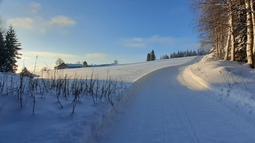 Latuja ylläpidetään lumitilanteen mukaan kunnossa hiihtäjille.