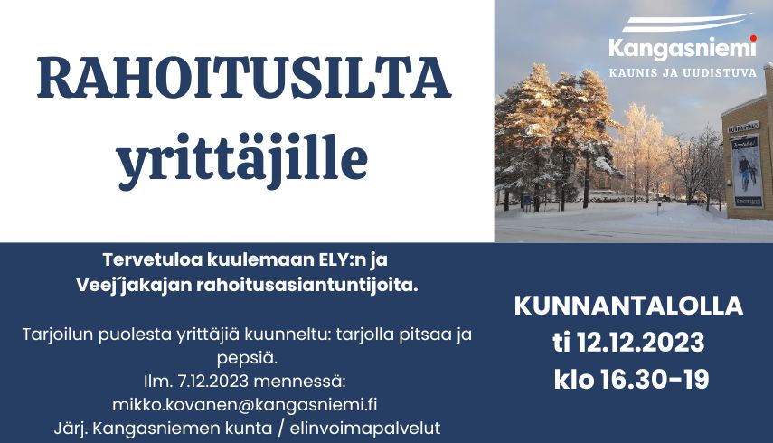 Ilm. 7.12.2023 mennessä: mikko.kovanen@kangasniemi.fi