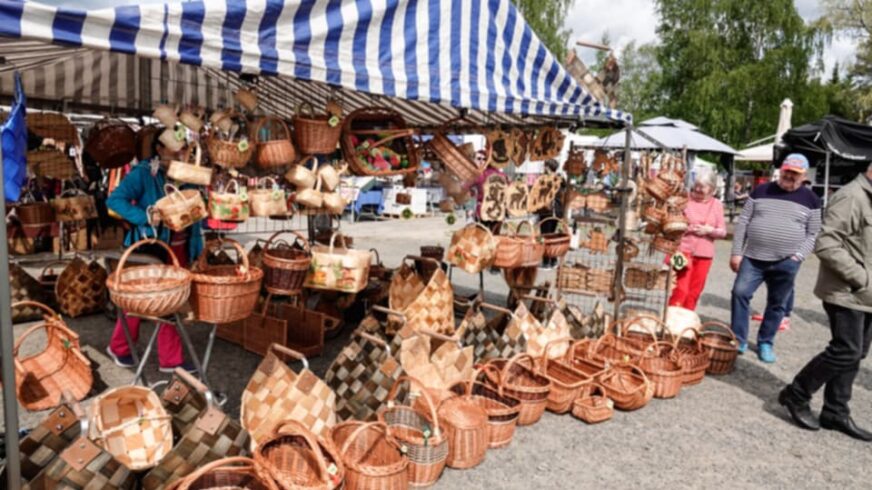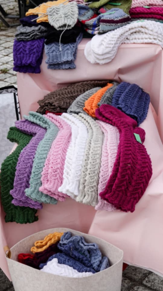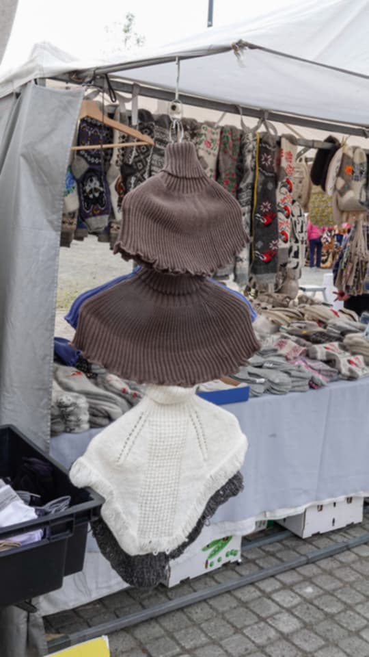 Kattiloita, pannuja, koreja, villasukkia, mehua, hilloa, hellemekkoja, legginsejä, kauhoja, kalasäilykkeitä … tarjolla on vaikka mitä. Virolainen rouva kehuu nokkossukkia. Ne eivät kiristä, jalat pysyvät kuivina ja lämpöisinä. Tarjolla on myös huovutettuja villalapasia.