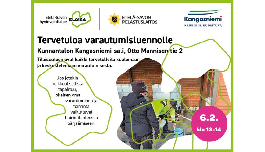 Tervetuloa varautumisluennolle Kunnantalon Kangasniemi-saliin perjantaina 6.2.2026 klo 12-14.