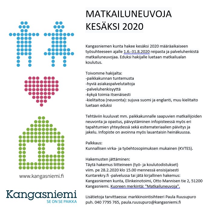 Vuoden 2026 alusta Mikkelin seudun työllisyyspalveluiden ajanvaraukseton palvelu Kangasniemellä Duunituvalla muuttuu kerran viikossa tarjottavaan palveluun. Vuoden 2026 tammikuussa Duunitupa on avoinna ilman ajanvarausta tiistaisin klo 9–12. Jatkosta ilmoitetaan myöhemmin. Katso lisää!